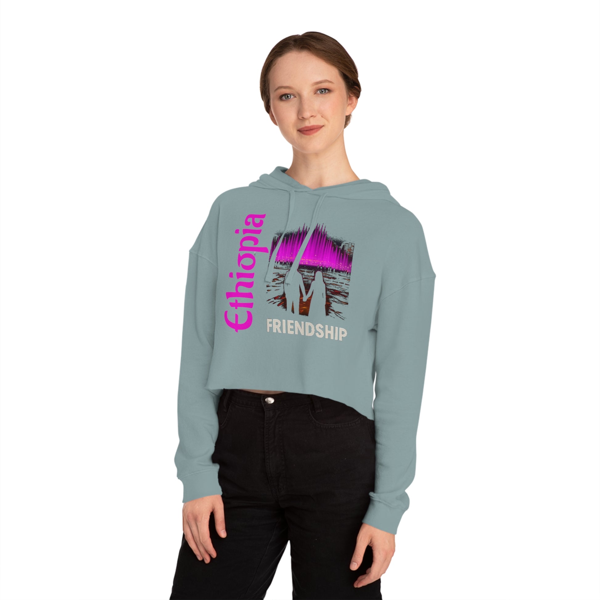 Ethiopia Friendship Cropped Hoodie, Trendy Pullover, Gift for Friends, Casual Streetwear, Spring Fashion, Unique Hooded Sweatshirt
